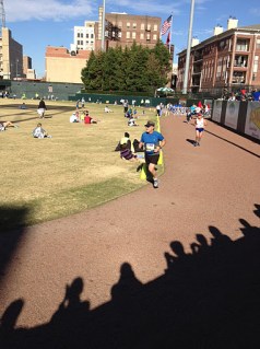 David (recall, he is our lightening fast running friend we met in Denver in 2010) finished the marathon in 3:22:10. Carl had a PR at 5:06:28. Here’s a picture of CG rounding the finish!