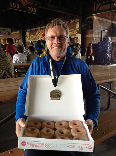 All marathon finishers got a DOZEN Krispy Kreme donuts. Really? We enjoyed a couple and then gave the rest to some very appreciative on-lookers.