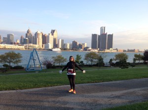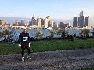 On October 20, 2013, Carl and I headed north to Detroit to run the Detroit Free Press/Talmer Bank Marathon (Carl) and Half Marathon (me). If you read this blog, you know that I was injured before and didn’t really train for this half at all. I’d made it up to 8 miles a few days before the race, and felt good, but went into this one with two goals only: finish and don’t get hurt…
